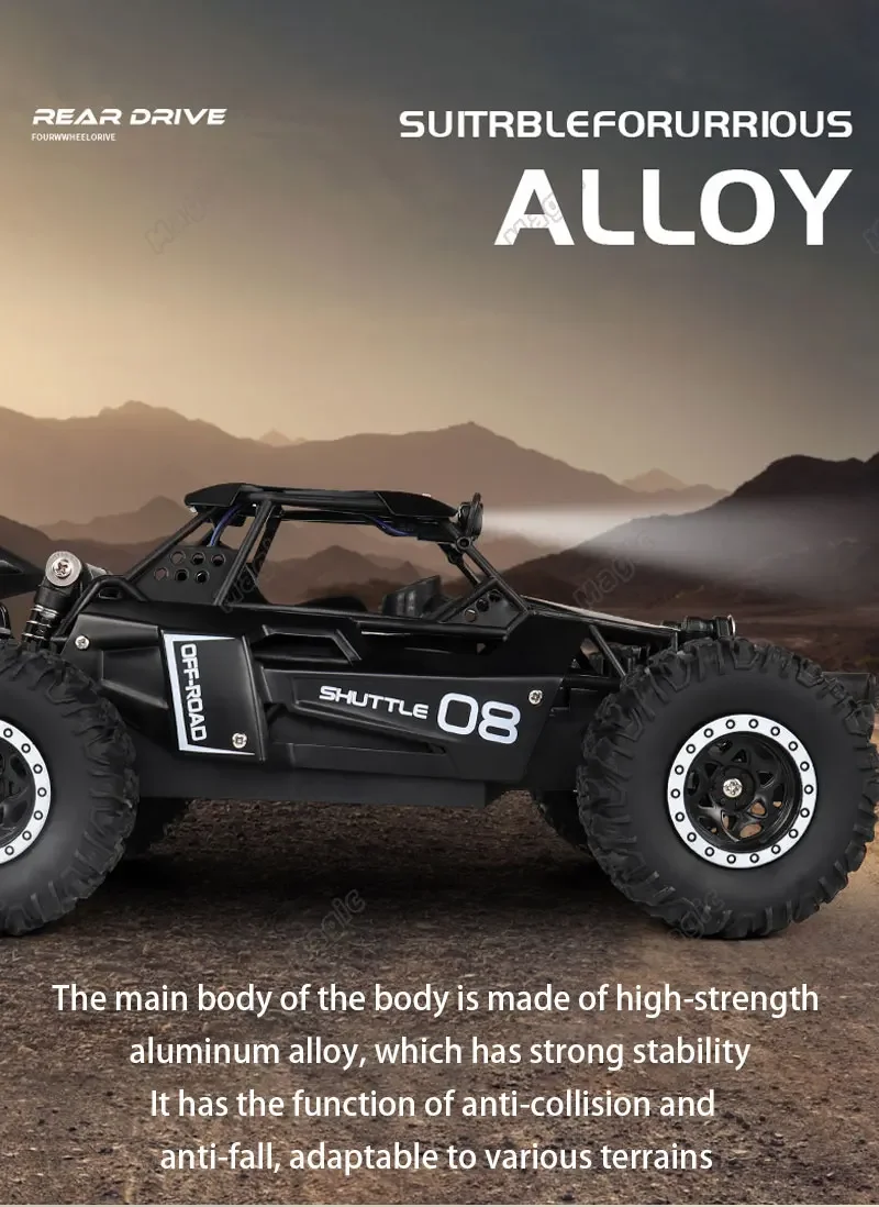 - Robust All-Terrain Performance & Superior Traction — Equipped with a high-performance rear-wheel drive system and rugged, high-traction off-road tires, the DK087 RC Monster Truck conquers diverse terrains including lush grass fields, sandy beaches, rocky mountain trails, gravel roads, and rugged dirt tracks. Its advanced shockproof suspension system ensures a smooth ride over bumps, jumps, and uneven surfaces — perfect for high-speed runs, stunt tricks, and challenging outdoor adventures.